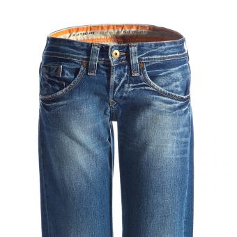 Kuyichi Jeans Sugar, das Spitzenjeansmodell in verschiedenen Waschungen. Die Jeans sitzt lässig auf der Hüfte und ist mit breitem, geraden Beinschnitt. Tiefgesetzte, große Taschen sorgen für einen knackigen Hintern